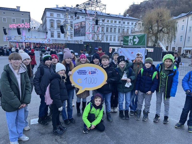 Gemeinsam mit Kollegin Zwilling und Kollegen Wakonig durften die Schülerinnen und Schüler eine Spende von € 1.000 an das Ö3 Weihnachtswunder übergeben.