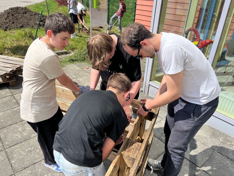 Die MINT-Klasse 3A hat ein Hochbeet aus Paletten gebaut!